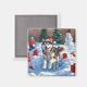 Siberian Husky Running in Snow with Christmas Hat Magnet