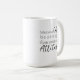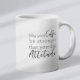 A morning coffee mug with a siberian husky with custom name in script style. "May your Coffe be stronger than your dog's Attitude" is written on the back. Perfect gift for dog owners that have a dog with an attitude and also love coffee.