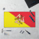 Bring the ancient spirit and sun-drenched beauty of the Mediterranean to your office with the Sicilia Desk Mat. This design features the legendary Flag of Sicily, defined by its diagonal red and yellow field and the striking Trinacria at its center. The Trinacria, a symbol dating back to ancient Greek times, depicts the three-legged "triskelion" representing the three capes of the triangular island, with the winged head of Medusa at the heart to ward off evil and protect the home. The stalks of wheat framing the symbol celebrate Sicily's historic role as the fertile "granary" of the Roman Empire.