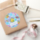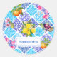 Summer Sicilian blue yellow floral colourful azulejo Amalfi Mediterranean majolica Round Sticker. Chic floral botanical citrus garden pattern inspired by the summer bright italian themed art of majolica. Beautiful Sicilian ceramic tiles in pink yellow and blue. A fun style bright design for home decor, clothes, mobile and Ipad cases, invitations and much more. You can change all text colours and fonts, click to customize further underneath the text customisation area this will take you into the design tool. A unique gift for birthdays, holidays and any special occasion. Whether for valentines day, Christmas or as a gift in general it makes a great gift idea