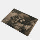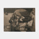 This design features a monochrome sepia-tined illustration by the English Victorian-era painter Joseph Clark (1834–1926). It depicts a sick young girl being held with affection by her father as her mother holds a bowl of soup to offer to the young child. The girl is recuperating from her illness as her family hopes that she will get better soon. There is also a healthy young girl sitting happily on the floor beside the mother. A pet rabbit is lying on the floor next to the father. It is a beautiful depiction of a loving family supporting their young daughter through an illness that is making her suffer. The original artwork was painted by Joseph Clark in 1857.