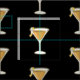 A glass of Sidecar cocktail with a stripe of lemon rind. Seamless pattern. Custom background colour.