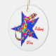 Sidney Salamander à l'allure capricieuse semble aimer se balancer sur cette étoile bleu vif. Fun coloré design de rendu fantaisie sur gardien de l'ornement de Noël pour les enfants et les adultes. Tout le texte peut être personnalisé en modèle fourni. Art original et design par Anura Design Studio.