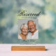 "Siège Réservé" Photo Symbole acrylique funéraire, personnalisé avec nom et date. Honorer la présence d’un être cher avec cet élégant Siège Réservé En Mémoire d’Amour Acrylique Signe. Doté d'un arrière - plan neutre et flou et d'un espace photo personnalisable, ce panneau crée un hommage paisible et sincère aux mariages, aux funérailles ou à la célébration des cérémonies de la vie. Imprimé en acrylique clair de haute qualité et associé à une base en bois, il sert de moyen raffiné de réserver un siège pour quelqu'un de spécial qui restera toujours proche de coeur. Les tons neutres intemporels complètent n'importe quelle décoration, du minimalisme moderne à l'élégance classique, ce qui en fait un ajout significatif à votre exposition de souvenir. - Sièges commémoratifs réservés aux mariages ou aux funérailles - Célébration de la vie - Tables commémoratives et expositions commémoratives - Décor sympathique élégant et conservation durable