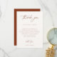 Desert Sienna, Wedding reception thank you table card. Template provides multiple lines for your custom thank you message. Features, burnt sienna colour typography on sandy beige background with matching sienna colour backing.