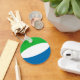 The flag of Sierra Leone has been deftly fitted to the circular fob of this keychain. A handy reminder of Sierra Leonean heritage.