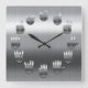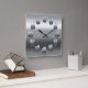 An American Sign Language clock, with faux metallic hands on a faux brushed stainless backing.