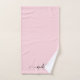 Serviette de main personnalisée élégante et chic avec monogramme, écriture personnalisée, rose blush. Ce design délicat présente un nom personnalisé dans une police calligraphique cursive avec empattements (ou typographie) en noir sur fond rose blush ou rose pastel. Cadeau féminin élégant et stylé pour une pendaison de crémaillère, également pour un anniversaire, un enterrement de vie de jeune fille, un mariage, un sweet 16, la fête des mères, un enterrement de vie de jeune fille, un anniversaire de mariage et pour une fête de remise de diplôme, et c'est pour la fille qui aime les choses élégantes et stylées.