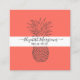 Modern pineapple design featuring a pineapple illustration, the traditional symbol of hospitality and friendship, on a coral background with handwritten script typeface. Add your name or business name in this elegant handwritten script, and customize the back with your contact details beneath a signature smaller pineapple illustration. Perfect for hospitality industry professionals, caterers, chefs or any occupation.