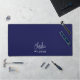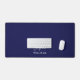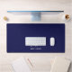 Stylish modern custom monogram desk mat with a modern minimalist signature typography paired with sans-serif font in minimal WHITE OVER NAVY BLUE background. Make it yours by adding your own monogram name to create a design as unique as you are. The perfect gift for any occasion.