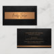 Trendy glam luxury gold copper metallic and black leather texture (BOTH PRINTED, NOT REAL) elegant script signature calligraphy professional business card with an exclusive glamourous luxurious style. +++ Easy to personalize with your business details on both sides. ++++++++++ Suitable for fashion designers, artists, boutique owner, personal stylist, interior designer, salon manager, makeup artist and other creative professions.