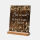 Signature Script Love Is Sweet Wood Rustic String Lights Panneau de table - Cet élégant panneau de table en bois brun et blanc, avec de belles lampes à cordes et floral blanc peut être personnalisé avec vos détails Mariages (le produit n'est pas vraiment fait de bois).