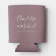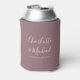 An elegant mauve wedding favor can cooler featuring stylish signature script names and special date set in modern typography. Designed by Thisisnotme©
