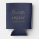 Signature Script Navy Blue Gold Wedding Can Cooler