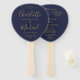 Signature Script Navy Blue Gold Wedding Program Hand Fan
