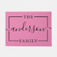 Signature Script Personalized Pink Modern Family Name Doormat. This elegant design is the perfect housewarming gift for newlyweds or new homeowners. Trendy hand lettered script is paired with a serif font for a rustic look.