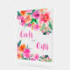 Cartes de douche nuptiale et tableau cadeau rose chaud brillant signe transparent haut de table avec joli peint à la main rose audacieuse, fleurs rouge orangé et verdure. Parfait pour la fête de jardin de douche à thème boho automne. Avec une typographie de script moderne.