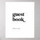 Ce signe de livre d'or à typographie noire moderne est parfait pour un mariage simple. Le design minimaliste noir et blanc présente une police rétro mais contemporaine avec une touche rustique bohème unique. Parfait pour toutes les saisons. Gardez-le minimal, tel quel, ou ajoutez vos propres graphiques et illustrations.