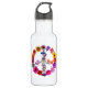 C'est une belle bouteille d'eau blanche a un signe de paix fait de photographies originales des fleurs. Paix !