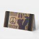 L'image imprimée sur le présentoir de table provient d'une photo d'une création originale au crochet en tapisserie conçue à la main et Copyright © par la designer publiée Delores Chamblin. L'image de la partie avant du sac unique de couleur terre marron fait main avec signe de paix, poing de solidarité et unité est reproduite sur le présentoir autonome.