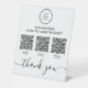 Un guichet d'affaires personnalisé avec le logo de votre entreprise et 3 codes QR pour les clients font des paiements via différentes applications.