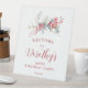 Bienvenue à votre fête d'anniversaire avec cet élégant panneau d'accueil fleuri d'hiver. Un joli arrangement de baies rouges profondes et de feuilles verts à la sauge molle ornent le panneau. Tout le texte peut être modifié