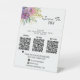 Aquarelle rehaussée d'énergie FLORAL ROSE BLEU PURPLE FLEURS MAROON SUR Tente de table BLANCHE en utilisant le code QR pour le paiement.