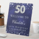 Un signe de bienvenue pour une fête du 50e anniversaire. Un arrière - plan bleu marine avec d'élégantes étoiles faux argent. La couleur bleue est inégale. Personnalisez et ajoutez un nom et un texte. Lettres blanches.