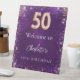 Un signe de bienvenue pour une fête du 50e anniversaire, girly et glamour. Un arrière - plan violet profond décoré de faux parties scintillant, brille. La couleur violette est inégale. Personnalisez et un nom.