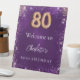 Un signe de bienvenue pour une fête de 80e anniversaire girly et glamour. Un arrière - plan violet profond décoré de faux parties scintillant, brille. La couleur violette est inégale. Personnalisez et un nom.