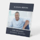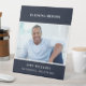 Avec le texte : Dans la mémoire aimante. Personnalisez et ajoutez une photo, un nom et des dates. Arrière - plan bleu foncé, texte blanc.