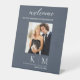 Signe De Table Affiche de bienvenue photo bleu et blanc-Mariage