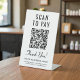 Un simple panneau de piédestal de table moderne pour votre entreprise avec un code QR pour les clients à analyser pour les paiements. Ajoutez votre code QR, votre nom d'entreprise, votre numéro de téléphone et votre adresse de rue dans une simple typographie.