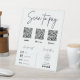 Ce panneau de code QR "Scan to Pay", élégant et moderne, est le moyen idéal de rationaliser le processus de paiement de vos clients. Doté d'un design propre et professionnel, le panneau affiche en évidence plusieurs codes QR pour les applications de paiement populaires comme Venmo, Cash App, et PayPal, ainsi que des icônes pour d'autres modes de paiement acceptés comme l'argent comptant, la carte de crédit, Apple Pay et Google Pay. Vous pouvez même ajouter votre propre logo et vos coordonnées pour créer un look entièrement customisé et marqué. Ce panneau polyvalent est idéal pour les entreprises de toutes tailles et peut être facilement affiché sur un comptoir ou une table.