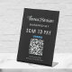 Panneau de tablette pedestal personnalisé pour votre entreprise avec votre code Venmo pour les clients à scanner pour les paiements mobiles et votre nom ou marque présenté dans un script de signature élégant. Téléchargez votre code QR et ajoutez vos coordonnées en lettres blanches propres.