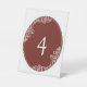 Tropical Red Anthurium illustrated oval shaped wedding table signs. Art by Custom Wedding Artist Alexa's Illustrations.
