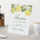 Élégant citron citrus mariage favors signe pour votre table de faveurs de fête. Customisez le nom du script de calligraphie modèle avec vos noms de mariée et de mariée.