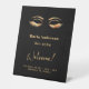 Arrière - plan noire classique et moderne. Personnalisez et ajoutez votre nom, titre, heures d'ouverture. Texte doré. Décoré d'une paire d'yeux/cils.