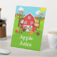 Ce panneau mignon et amusant présente une fille aux cheveux bruns avec un panier de pommes et un épouvantail et corneille. Dans l'arrière - plan est une grange rouge vif, une clôture marron piquetée, arbres, soleil, citrouilles et paniers de maïs et de pommes. Le texte combine des polices audacieuses et sans serif pour un look élégant et moderne. C'est parfait pour une fête d'automne sur le thème de l'anniversaire. Graphiques de MUJKA