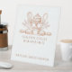 Baking utensils baker bakery pedestal sign featuring a detailed line art illustration of classic baking tools, wheat accents, and a cake stand in warm copper tones on a white background. Designed for countertop and table display, this sign creates a refined artisan bakery look that feels both welcoming and elevated. A beautiful addition for farmers market booths, bakery counters, dessert tables, and small baking businesses, helping present your setup in a cohesive and polished way that pairs seamlessly with matching bakery cards, labels, and packaging.
