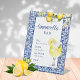 Cette invitation à une fête de mariage présente un thème bleu vif avec des agrumes.