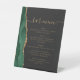 Un panneau élégant pour votre menu de bar mariage. Les mots "menu barre" apparaissent dans la calligraphie d'écriture manuscrite couleur or avec des swashes au début et à la fin, avec le texte personnalisable ci-dessous. Une aquarelle vert émeraude ornée d'une fausse parties scintillant dorée orne la bordure gauche sur un arrière - plan noir en ardoise. Voir notre collection pour la suite de faire-part de mariage et la papeterie de jour correspondant.