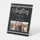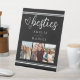 Besties Modern Photo Collage Black and White Pedestal Sign. Celebrate your unbreakable bond with this charming "Besties" collage photo design. Featuring a classic black and white aesthetic, this design is perfect for showcasing your favorite memories with your closest friends. The elegant script font for "besties" paired with clean sans-serif text for names adds a touch of sophistication, while the three photo slots allow you to personalize it with cherished moments. This design is an ideal way to commemorate friendship and would make a heartfelt addition to any space, reminding you daily of the special people in your life. Display your favorite snapshots and keep the spirit of your friendship alive with this beautiful best friend keepsake gift.