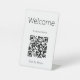 Bienvenue aux visiteurs de votre entreprise avec ce panneau en noir et blanc. Bienvenue est au-dessus du texte que vous pouvez changer à votre nom d'entreprise. Vous pouvez également entrer l'URL de votre site Web pour créer un code QR personnalisé. Le texte supplémentaire se trouve en bas, que vous pouvez modifier pour créer un message personnalisé. (Affichage : Rechercher le menu)