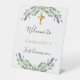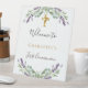 Signe De Table Bienvenue pour la première communion sur fond flor