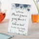 Veuillez retirer vos chaussures et prendre un panneau de siège en noir tourbillonné en lettrage contre un arrière - plan blanc avec un dessus floral bleu marine et argenté bleu marine.