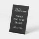 Bienvenue S'il vous plaît attendre d'être assis Merci Pedestal Sign. Elégant comptoir de bureau pour accueillir les invités dans votre restaurant, café, bar, club, cafétéria, boutique, magasin, événement, diner, mariage, fête, etc. Couleurs noir et blanc ou personnalisées. La police classique peut également être modifiée.