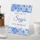 Entrez dans une fête d'anniversaire qui transcende l'ordinaire avec notre guéridon "Bliss Méditerranéens". Orné du charme captivant des motifs de tuiles bleues et imprégné des teintes sereines de la mer, ce panneau accueille les hôtes dans un monde où chaque instant est une brise. Complétant parfaitement tout thème d'anniversaire avec une touche d'élégance côtière, ce panneau se présente comme un phare de joie et d'amusement sophistiqué, guidant vos festivités avec ses polices serif modernes et élégantes et sa disposition décontractée. Idéal pour marquer les entrées, diriger les invités, ou simplement ajouter une touche décorative, laissez cette enseigne élever votre fête à un rêve méditerranéen.