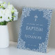 Signe De Table Blue Boy Baptism Faux Silver Croix Feuille Bienven