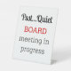 Preserve your meeting sanity with this attractive and straightforward message. Give others a heads up to be quiet, when they come into your space. Featuring a combination of script and modern typography, this pedestal sign gets straight to the point. Place where it can easily be seen and meet in peace!